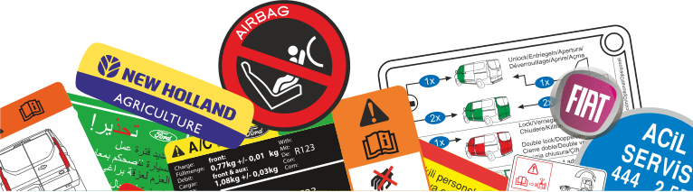 Araç içerisinde kullanılan basit, etkili ve açık bilgiler veren baskılı yapışkansız ürünlerdir. Bu ürünler; genellikle esnek malzemelerden üretilmekte olup yırtılma, esneme ve yanma testleri konusunda yüksek performans gösterir. Bunun yanı sıra ısı farklılıklarına ve UV ışıklara karşı dayanıklıdır. Sudan ve nemden etkilenmezler. Birçok farklı alanda kullanılmasının yanı sıra otomotiv sektöründe araç içerisinde kullanılan tanıtım kartları, kullanım talimatları vb. ürünler bu malzemelerden üretilmektedir.